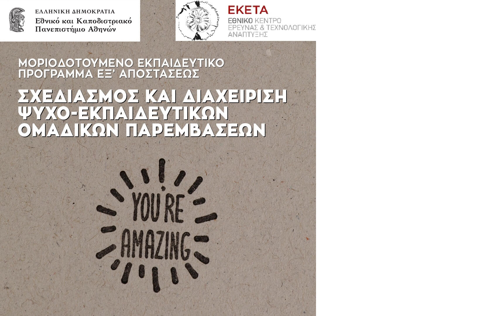 Το Κέντρο Επιμόρφωσης και Δια Βίου Μάθησης του Εθνικού και Καποδιστριακού Πανεπιστημίου Αθηνών σε συνεργασία με το Εθνικό Κέντρο Έρευνας και Τεχνολογικής Ανάπτυξης (Certh) και τον φορέα αυτού, τεχνοβλαστός Υγιεία/ΕΚΕΤΑ, ανακοινώνουν την έναρξη των αιτήσεων συμμετοχής στο μοριοδοτούμενο πρόγραμμα εξ’ αποστάσεως εκπαίδευσης (e-learning) «Σχεδιασμός και Διαχείριση Ψυχο-εκπαιδευτικών Ομαδικών Παρεμβάσεων» για το ακαδημαϊκό έτος 2025-2026.